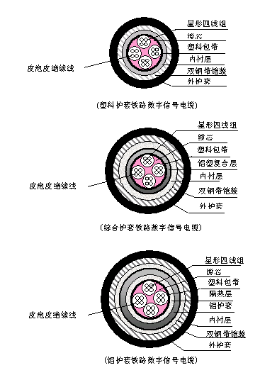 | 1 使用特性 1.1 電纜的使用環境溫度為-40℃~+60℃。 1.2 電纜導體長期工作溫度應不超過+70℃。 1.3 電纜敷設環境溫度:聚氯乙烯外護套電纜應不低于0℃;聚乙烯外護套電纜應不低于-20℃。 1.4 電纜的允許彎曲半徑:非鎧裝電纜應不小于電纜外徑的10倍;鎧裝電纜應不小于電纜外徑的15倍。 1.5 綜合護套鐵路信號電纜的理想屏蔽系數≤0.8;鋁護套鐵路信號電纜的理想屏蔽系數≤0.3 | |||||||||||||||||||||||