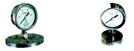 隔膜式壓力表是由膜片隔離裝置和配用壓力表兩大部分組成。廣泛應(yīng)用于石油、化工、醫(yī)藥、食品、造紙等行業(yè)測量具有強(qiáng)腐蝕性、高粘度、易結(jié)晶及含有固體顆粒的液體介質(zhì)壓力。