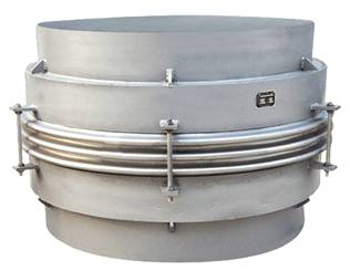 該膨脹節由兩段波紋管,中間接管及帶有限位螺母的小拉桿等零件組成,它在吸收橫向位移的同時,還吸收軸向位移。