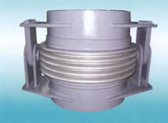 單式角向型膨脹節由接管.波紋管以及與接管相連的一對鉸鏈構成。它只能吸收單平面的角向位移,吸收位移時應有二個或三個鉸鏈膨脹節組合使用,同時鉸鏈具有承受內壓力推力。